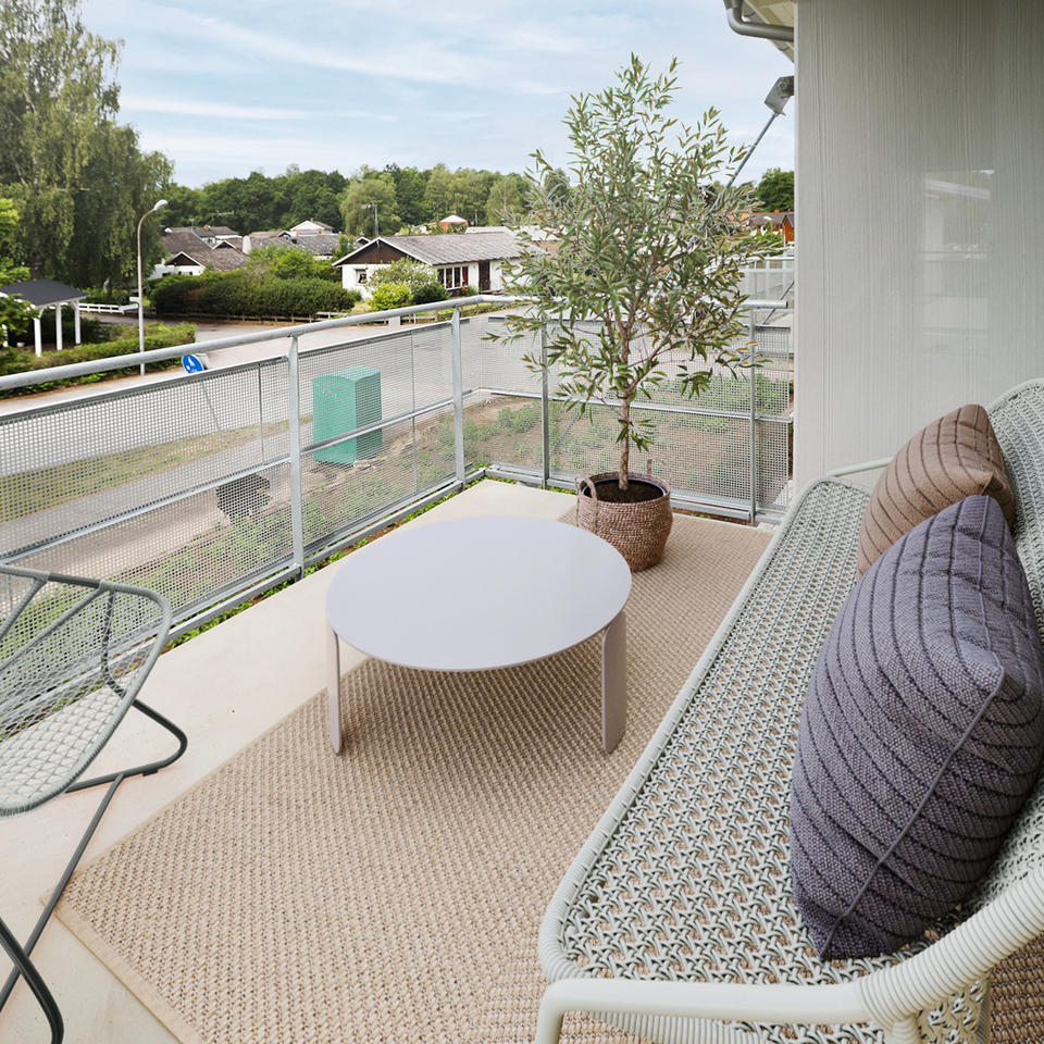 Öppen planlösning med två sovrum och stor uteplats eller balkong. Ljus och välplanerad bostad för par eller mindre familj.